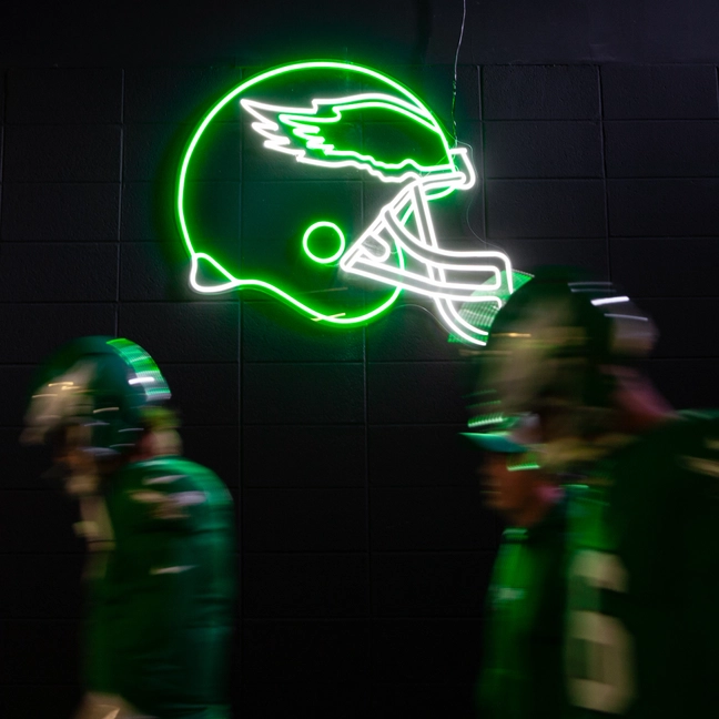 Kelly Green LED Helmet Sign from the Player Entrance Tunnel at Lincoln Financial Field