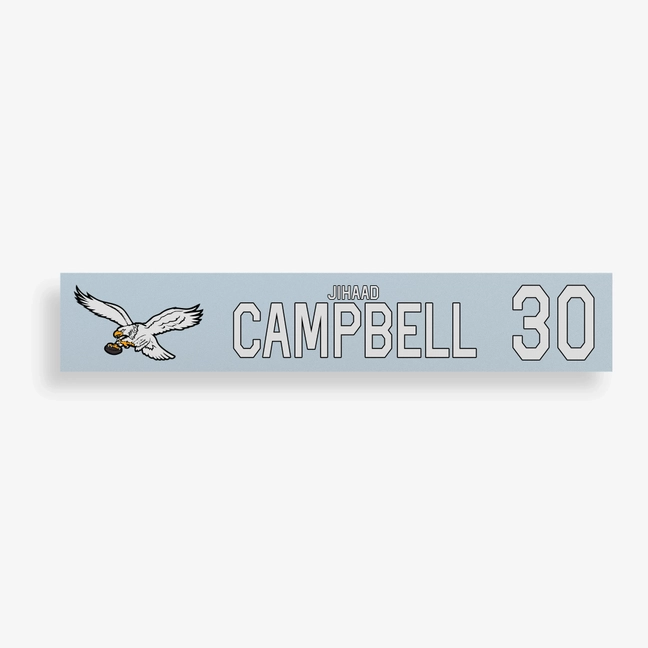 Jihaad Campbell Game-Used Philadelphia Eagles Locker Name Plate (10/26/2025)