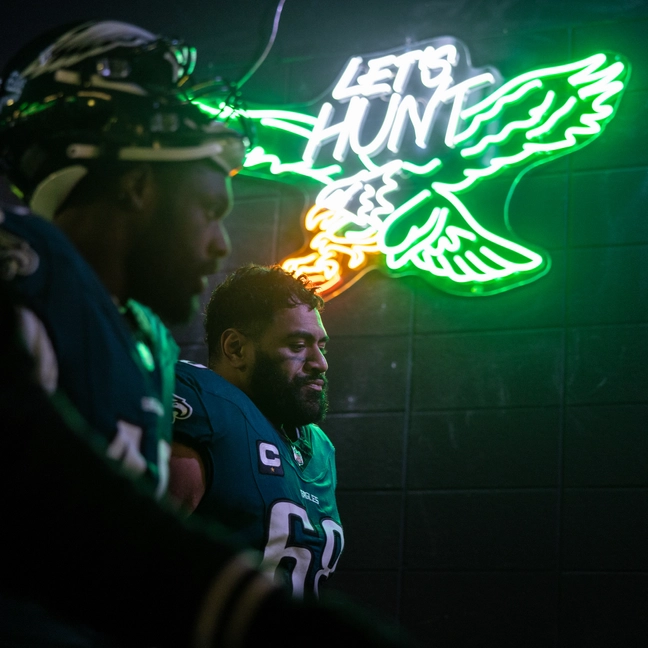 "Let’s Hunt" Green LED Sign from the Player Entrance Tunnel at Lincoln Financial Field - Divisional Round vs. Rams (1/19/2025)