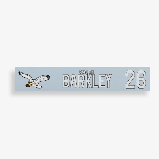 Saquon Barkley Game-Used Philadelphia Eagles Locker Name Plate (10/26/2025)