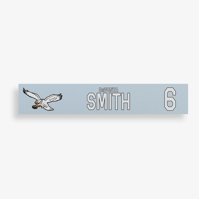 DeVonta Smith Game-Used Philadelphia Eagles Locker Name Plate (10/26/2025)