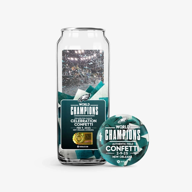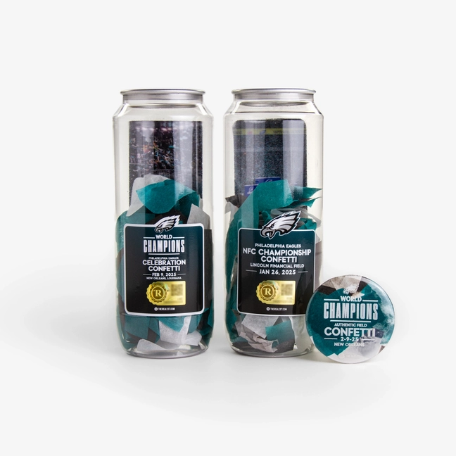 Eagles 2025 Championship Confetti Collection – Game-Used Confetti Bundle w/ Pin (NFC Title & World Championship)
