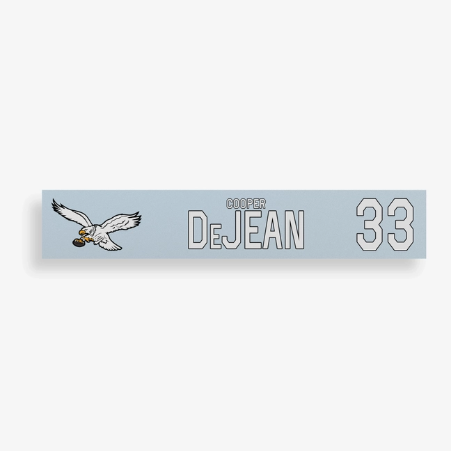 Cooper DeJean Game-Used Philadelphia Eagles Locker Name Plate (10/26/2025)