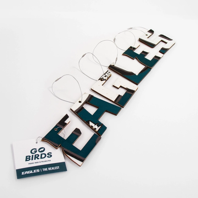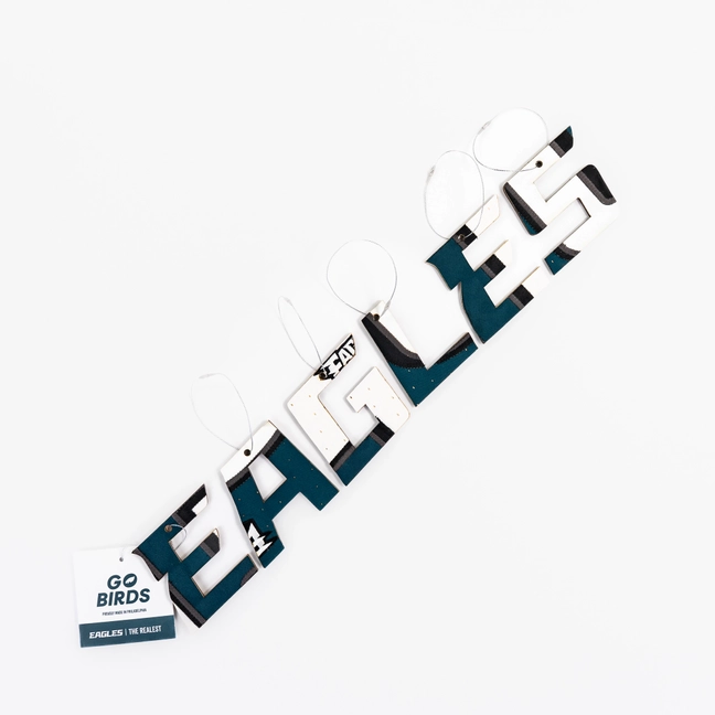 Philadelphia Eagles E-A-G-L-E-S Ornament Set Made from Team-Issued Jerseys (2023–24)