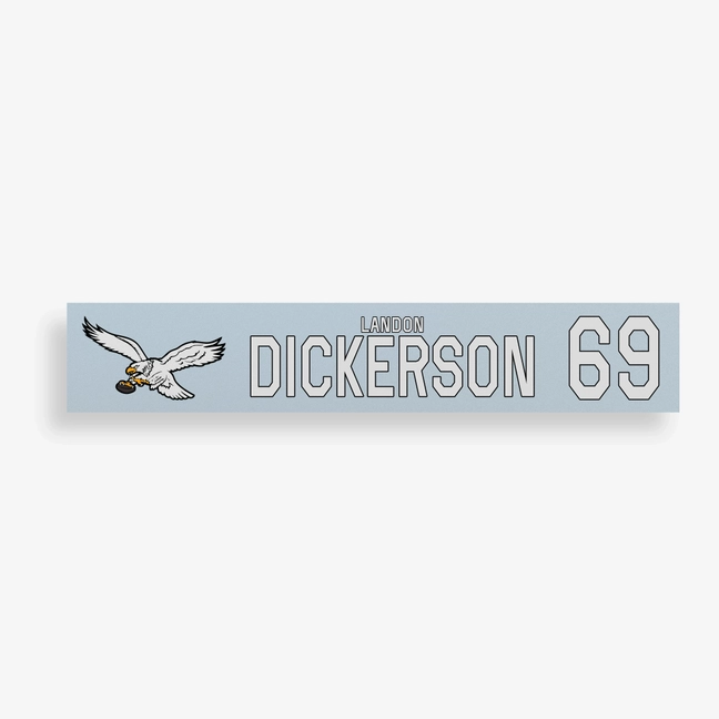Landon Dickerson Game-Used Philadelphia Eagles Locker Name Plate (10/26/2025)