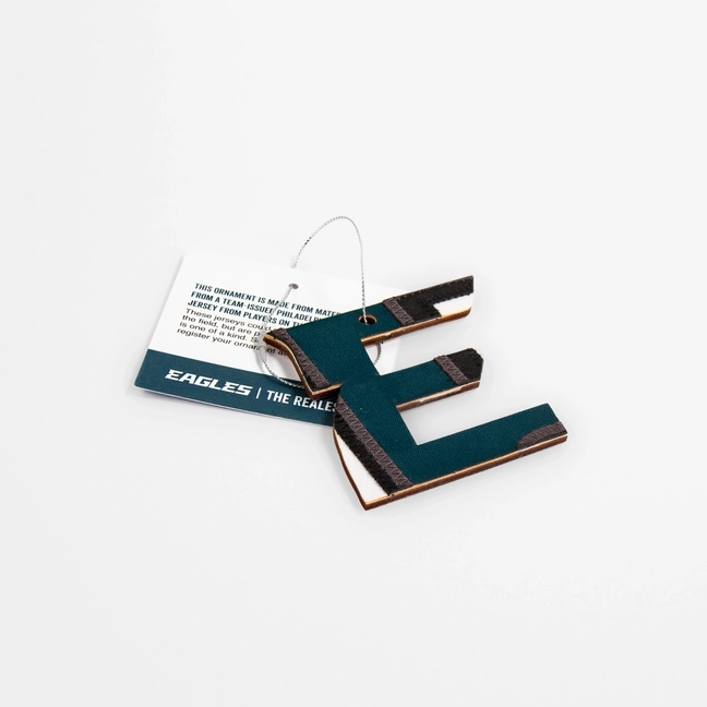 Philadelphia Eagles “E” Ornament Made from Team-Issued Jersey (2023–24)