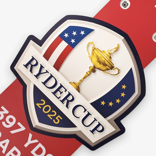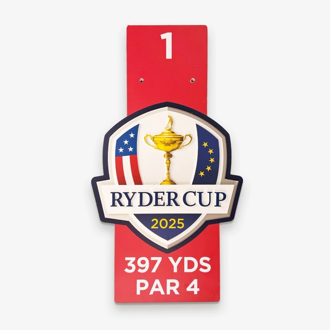 Ryder Cup 2025 Tournament-Used Wooden Yardage Sign — Hole 1