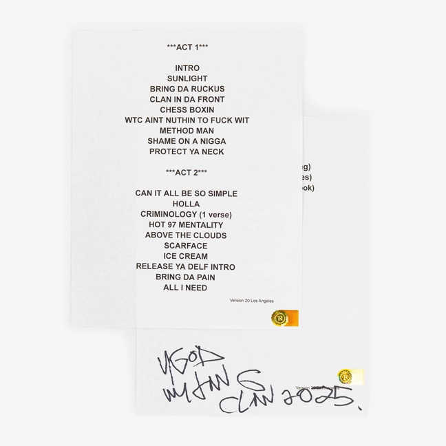 Method Man Signed Green Room Setlist (Los Angeles - June 22nd, 2025)
