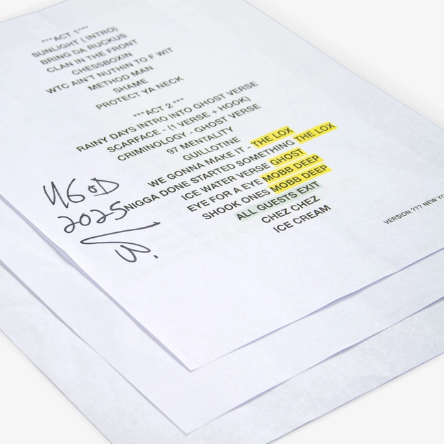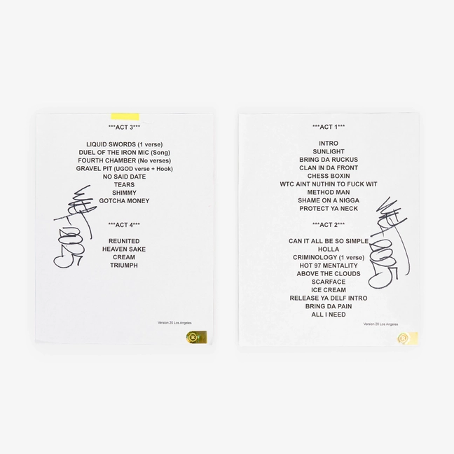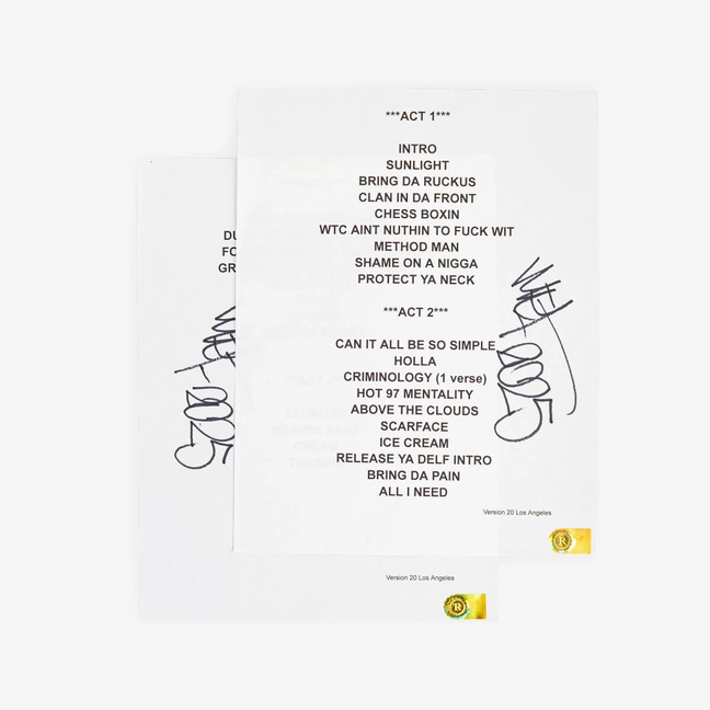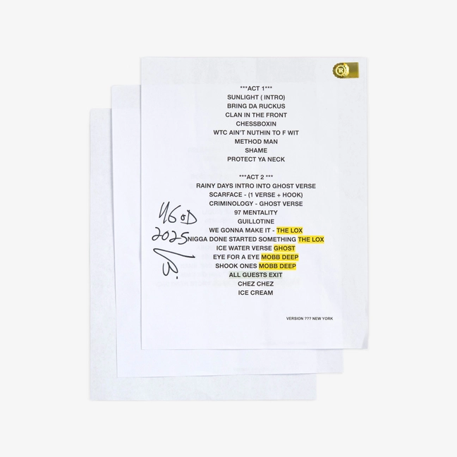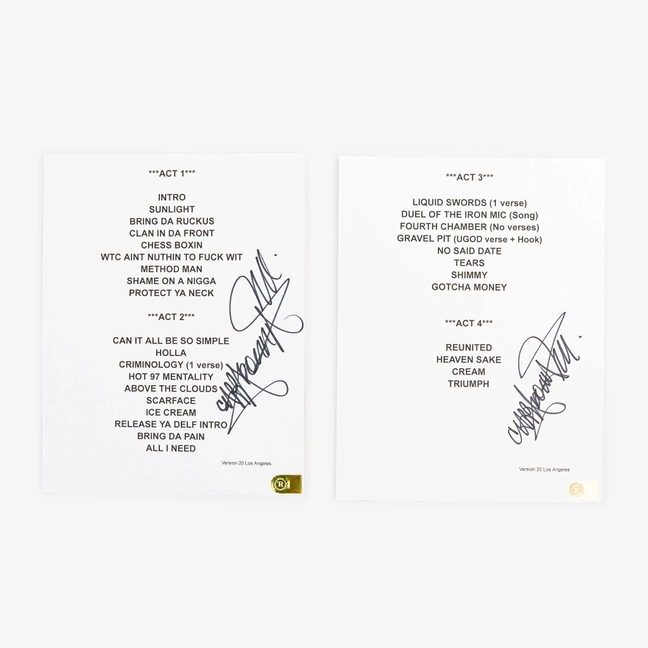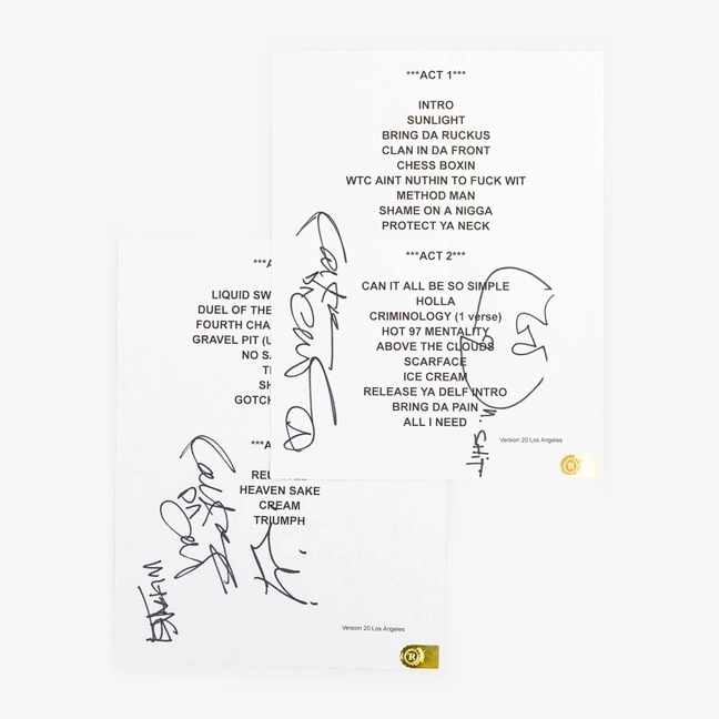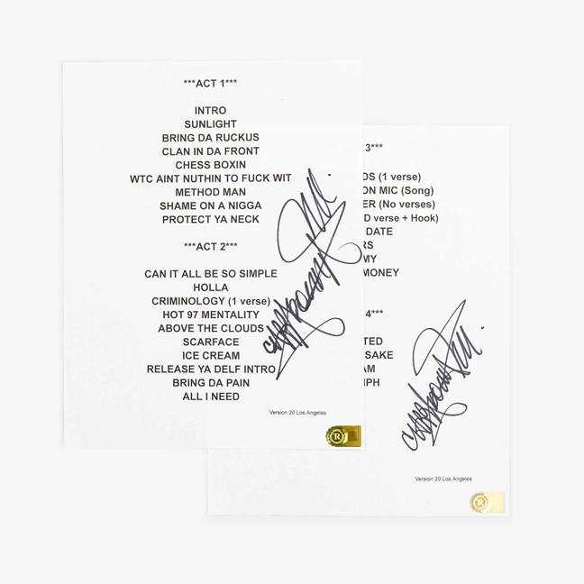 Raekwon Signed Green Room Setlist (Los Angeles - June 22nd, 2025)