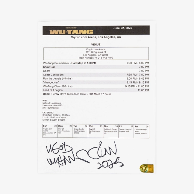 Raekwon Signed & Inscribed Wu-Tang Clan Final Chamber Concert Day Sheet (Los Angeles - June 22nd, 2025)